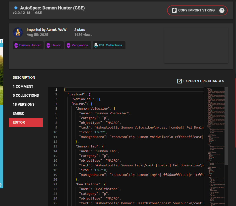 The GSE macro sequence is for Warlock and not Demon Hunter ? Or maybe I do something wrong ? When I try to import the GSE code I only get macro for Warlock