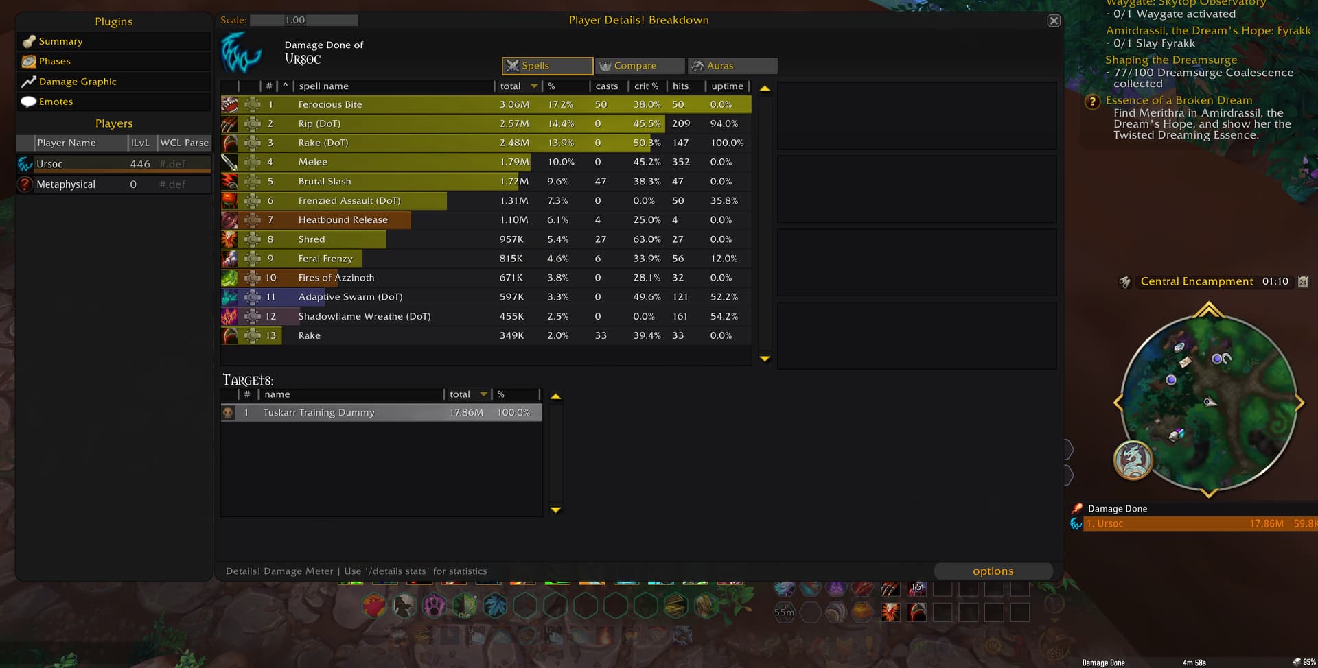 Basically, I really liked the regrowth response and the timing of the DOTS applications, I think the only feedback and constructive criticism would be to improve the execution of the ferocious bite in the single target macro (I think haha). I’m from a country where the MS is around 100ms, I think that’s sometimes why other users above get higher DPS than me, even though they’re on the same ilv. The rotation starts off with a formidable boost, but quickly drops off and is far below simulation. However, I want to point out how much better your macro is than the others around here so far