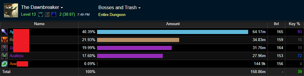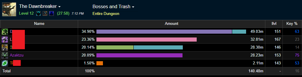 For reference: I just completed a +12 and +13 Dawn, +12 on Annihilator and +13 on AR. Both groups had relatively low overall DPS, so damage percentages should be taken with a grain of salt.