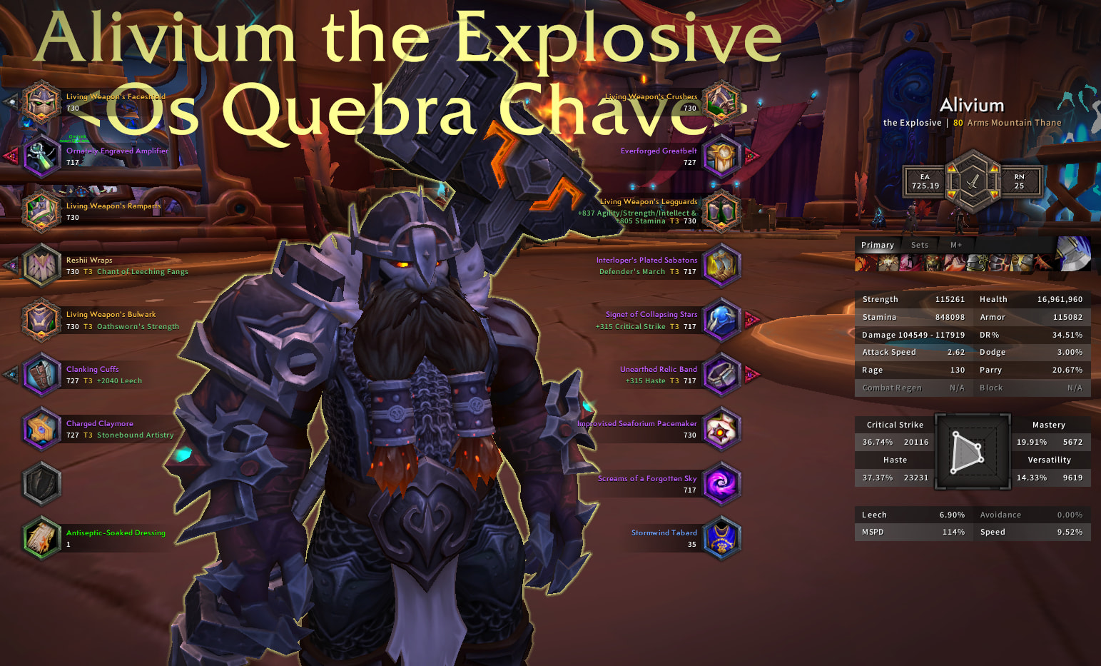Arms sequence, including Slayer for ST and Colossus for Mythic+