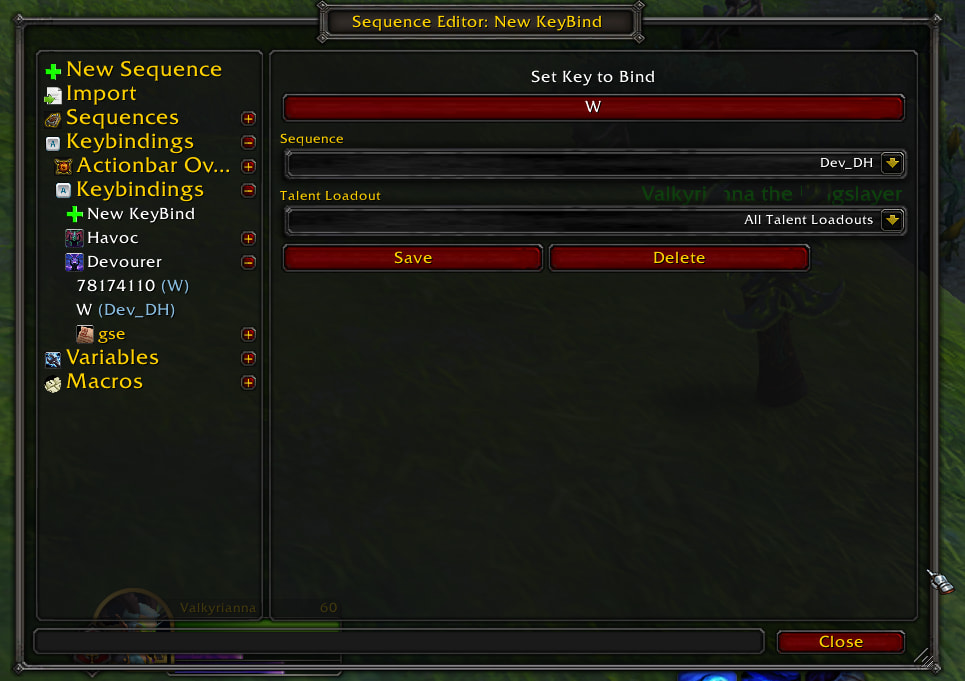 first I press the save button, hence it’s being displayed on the right side under the Devour spec, so it is “saved”. then I press the close button and when I reopen the window the keybind is gone.