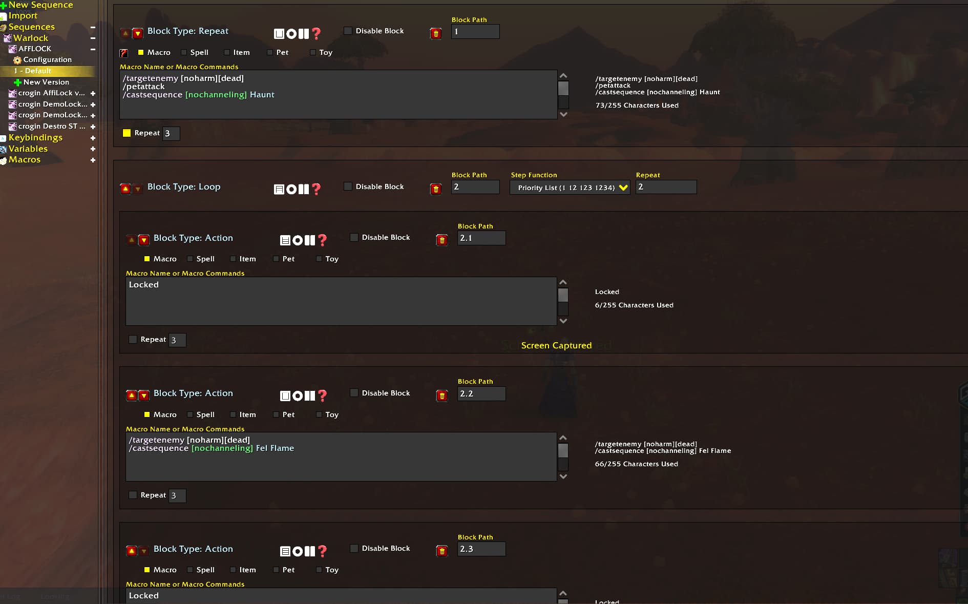 The sequence you’ve created will only cast Haunt and Fel Flame.