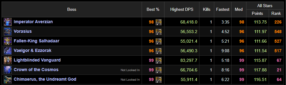 I am by no means someone who understands the ins and outs of GSE very well, but I have made some clumsy modifications to Elfyau’s currently outdated ST and AOE Pact Leader macros here, that seem to have performed very well for me in my first run of normal mode Voidspire. They comfortably outperformed the SBA, and you can see my logs below.