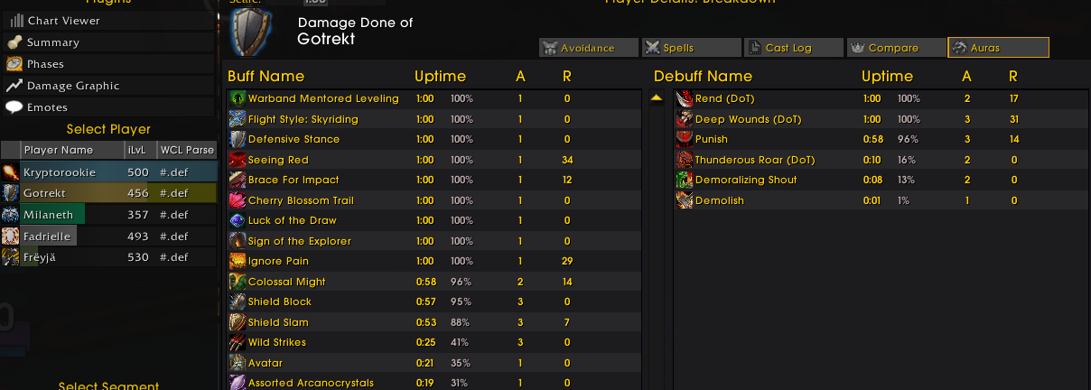 I added another action block containing a Revenge cast after the “castsequence Shield Slam, Revenge” action block. I have 97% uptime on Shield Block and 90% uptime on Ignore Pain, Revenge is my absolute highest DPS ability with almost 1.2 Billion damage from Revenge alone by the end of runs.