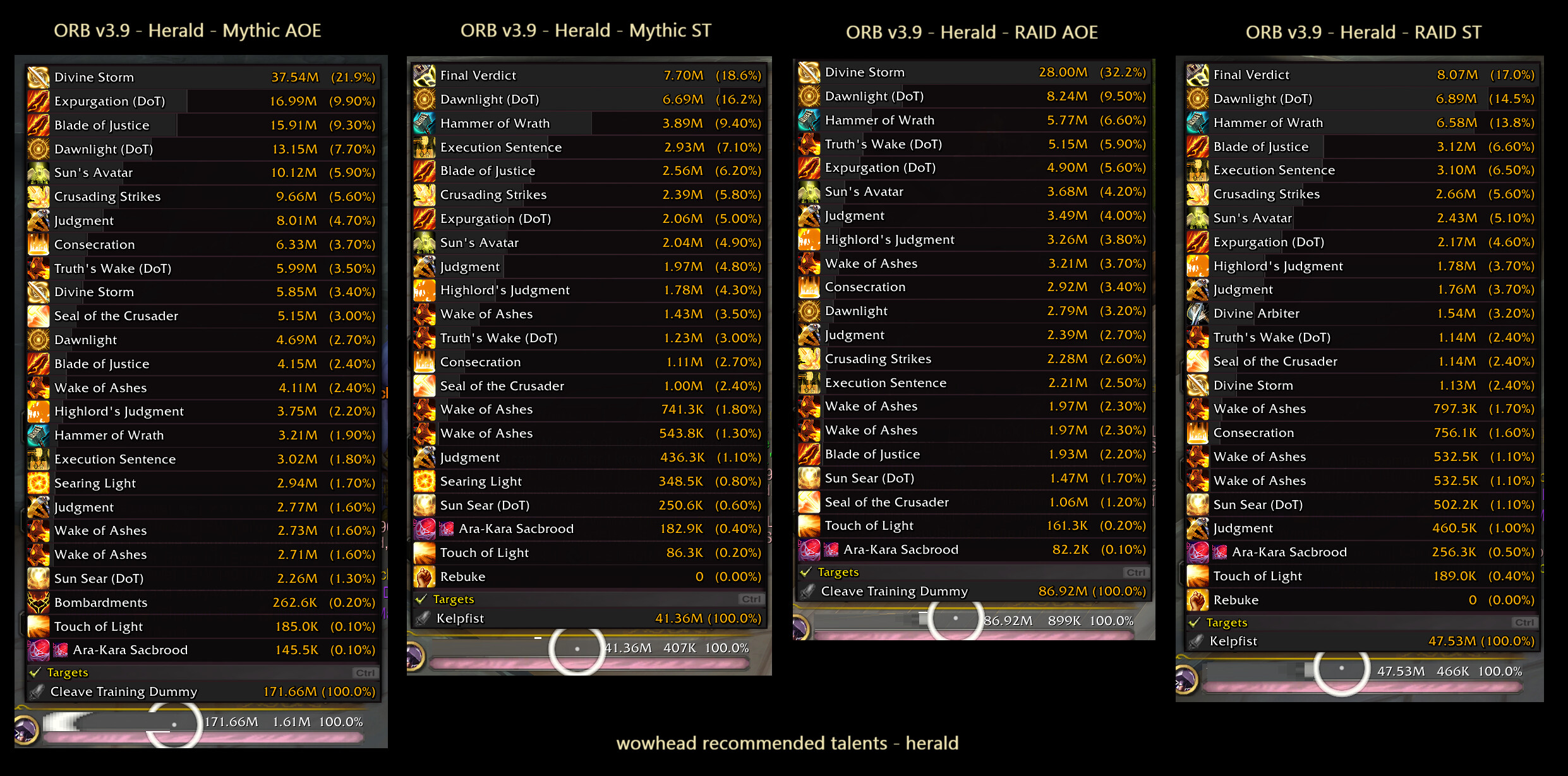 Orb wowhead has updated there best talent for raid and mythic, both are using Herald of the Sun now. no more templar. incase you want to try them out/update.