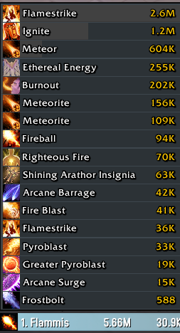Mage: Fire (Midnight) One Button sequence.