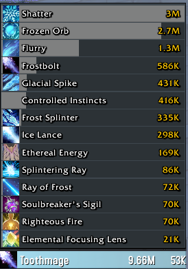 Single target is working well. Doing about 40K on boss dummy with Spellslinger. Looking forward to your AoE sequence. May try Frostfire once your AoE is operational just for science. ilvl 159,