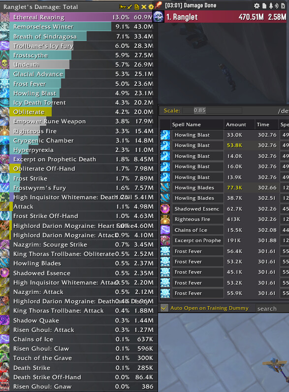 SBA vs ME 5 cleave dummys, 3 minutes ilvl 653 and little more survival
