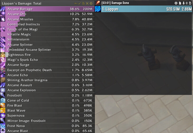 Super Low Damage, the frost macro I use pulls 3mil dps, this one is about 650k 646 ilvl full enchants for arcane using Mr Robot. EDIT** Just tried the blizzard built in macro and it pulls 1.2mil for about 10 seconds and then floats around 850k sustained, its intentionally nerfed through GCD so im not sure whats going on with this macro.