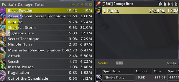 SBA vs ME 5 cleave dummys, 3 minutes ilvl 628.
