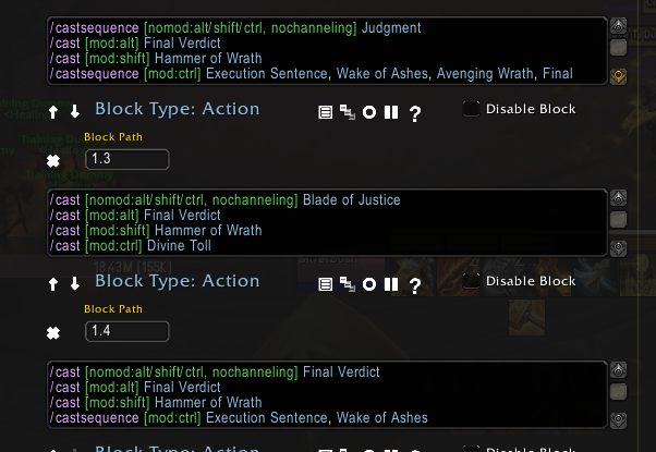 you’ll see in this image it shows 3 separate CTRL modifier macros but it was the only workaround to make sure that on the first usage it uses all the cds available and then after 30 seconds still uses execution sentence and wake of ashes.