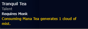 The main use, aside from fixing the mana issues you can have with that more mana heavy rotation compared to the more fistweaving focused one, is to use your Mana Tea stacks before each Sheilun’s Gift in order to reload its stacks with the Tranquil Tea talent and make the healing from Sheilun’s Gift stronger.