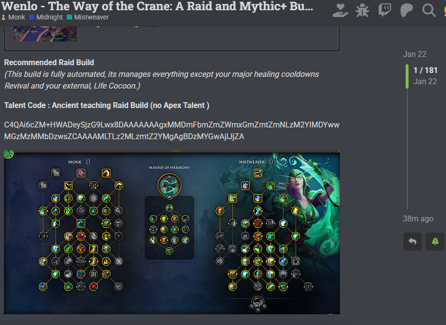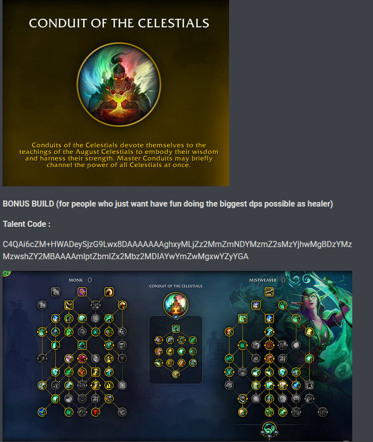 But Tbh you can just swap rushing wind kick for Ancient teaching you will lose a bit of damage but gain ton of healing and then it will be an decent option, more or less the Meta build used for M+ as Celestial