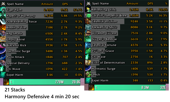 The Harmony one is a bit tankier ye. There are two versions for each Heroic Talent: one that only manages the DPS part, and a second one that also manages the brews. Maybe you used the DPS only sequence? The Harmony one that uses brews in automated mode is the last one