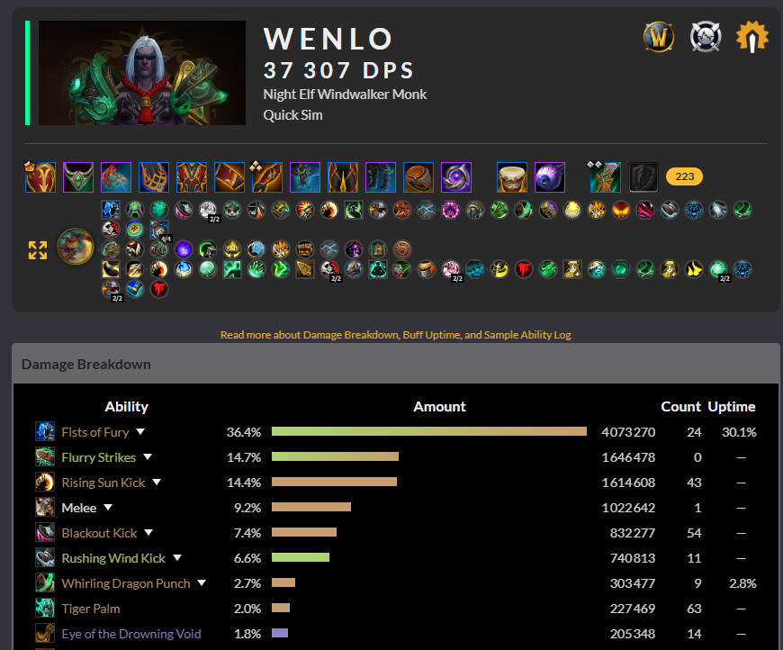 This sequence uses the following priority: Whirling dragon punch, Fists of Fury on cooldown, Zenith every 30 sec, Rising Sun Kick on Cd, Tiger Palm, Blackout Kick and Touch of Death